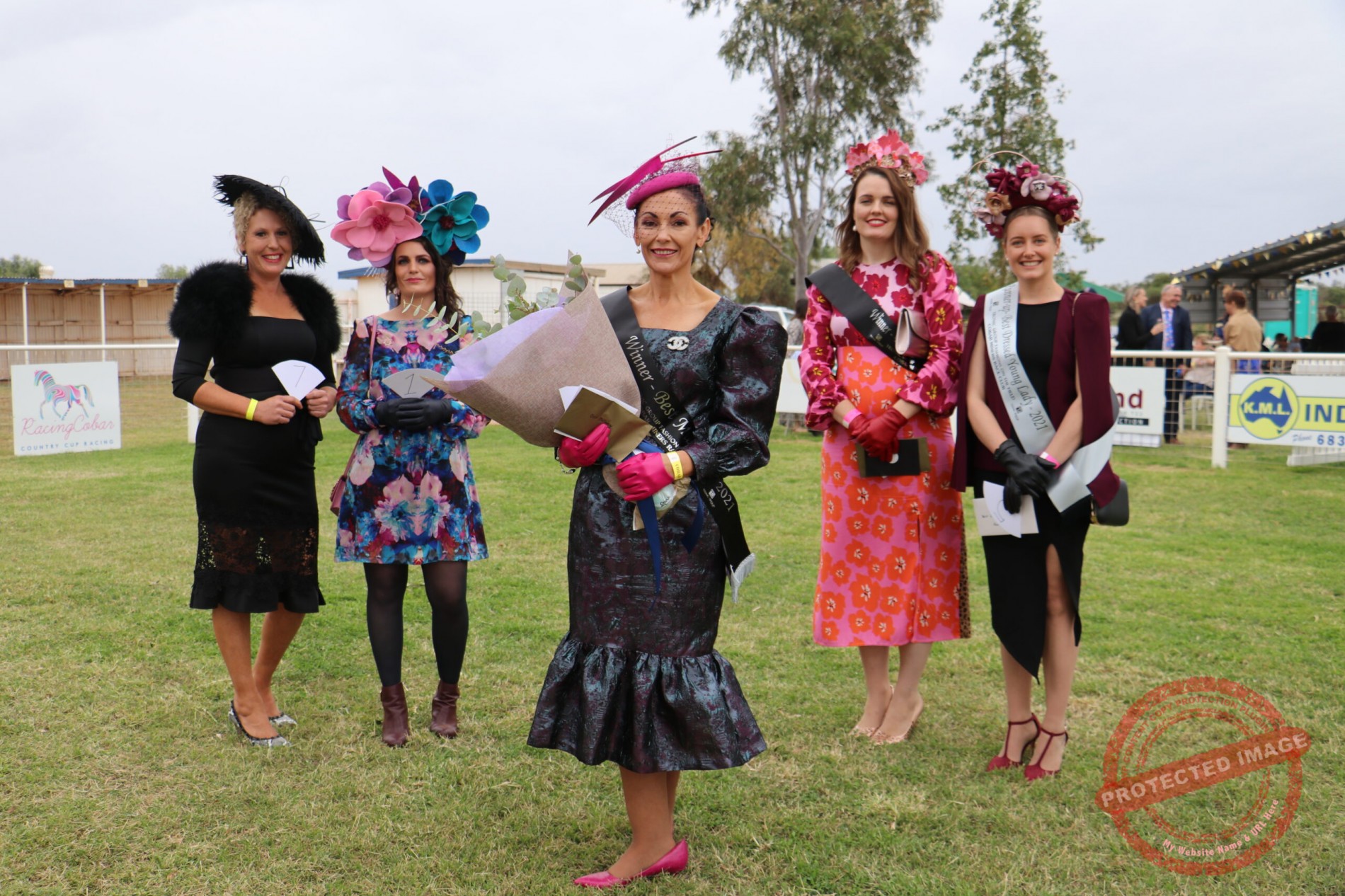 a print Cobar Races Milinery winner Michelle Green at front (147)