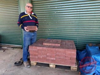 Cobar’s Iron Ring committee chair, John Collins has been sorting through 500-odd engraved pavers and putting together the donated pavers into family groups in preparation for their laying under the Iron Ring memorial sculpture on the eastern entrance to Cobar.