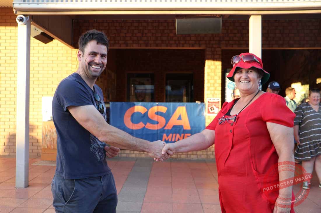 Christmas Street Parade Best Float Council, Peter Christen presenting prize to Jo-Louise Brown