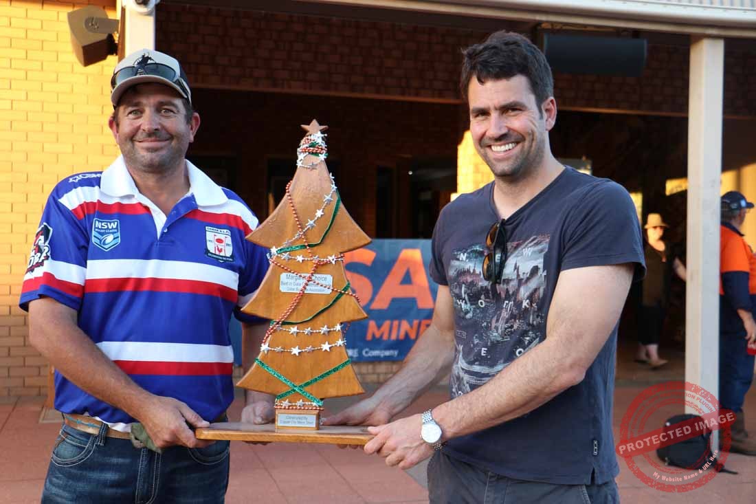 Christmas Street Parade Stevo accepting Community Spirit trophy for Junior League from Peter Christen