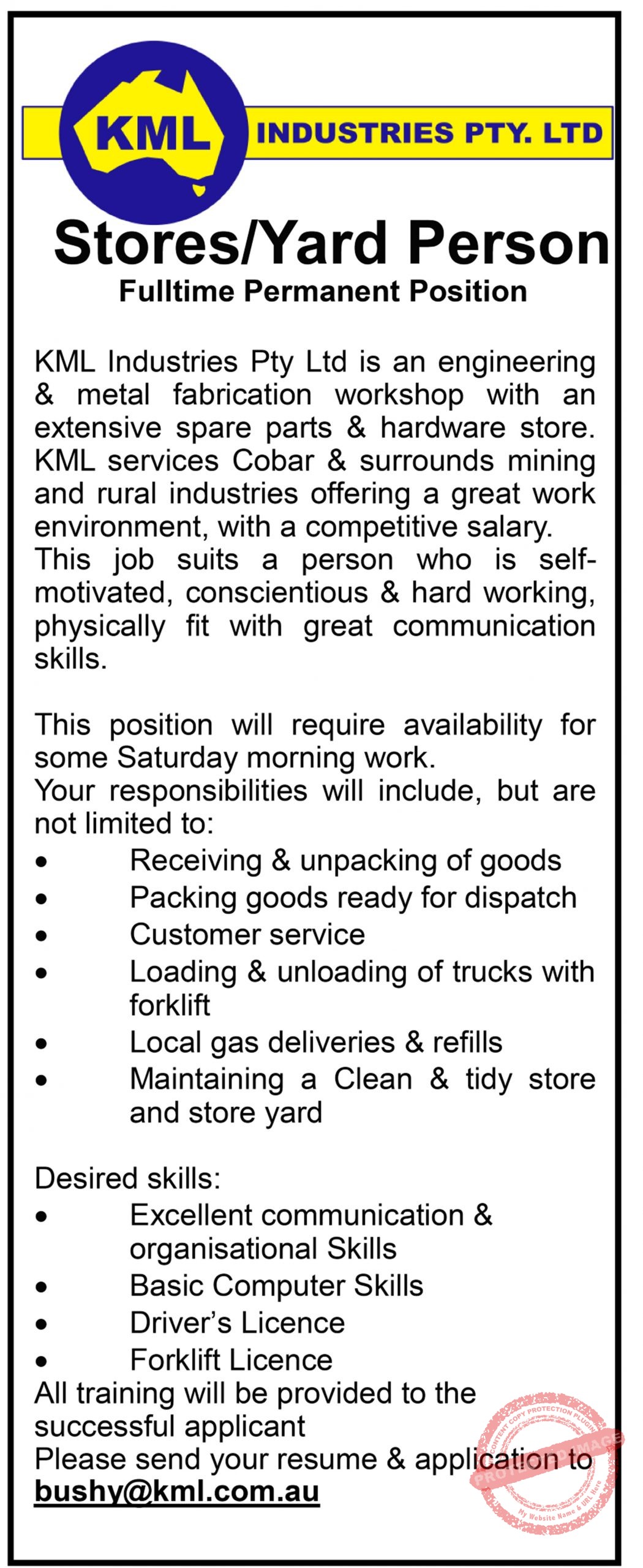 Pos Vac KML Stores