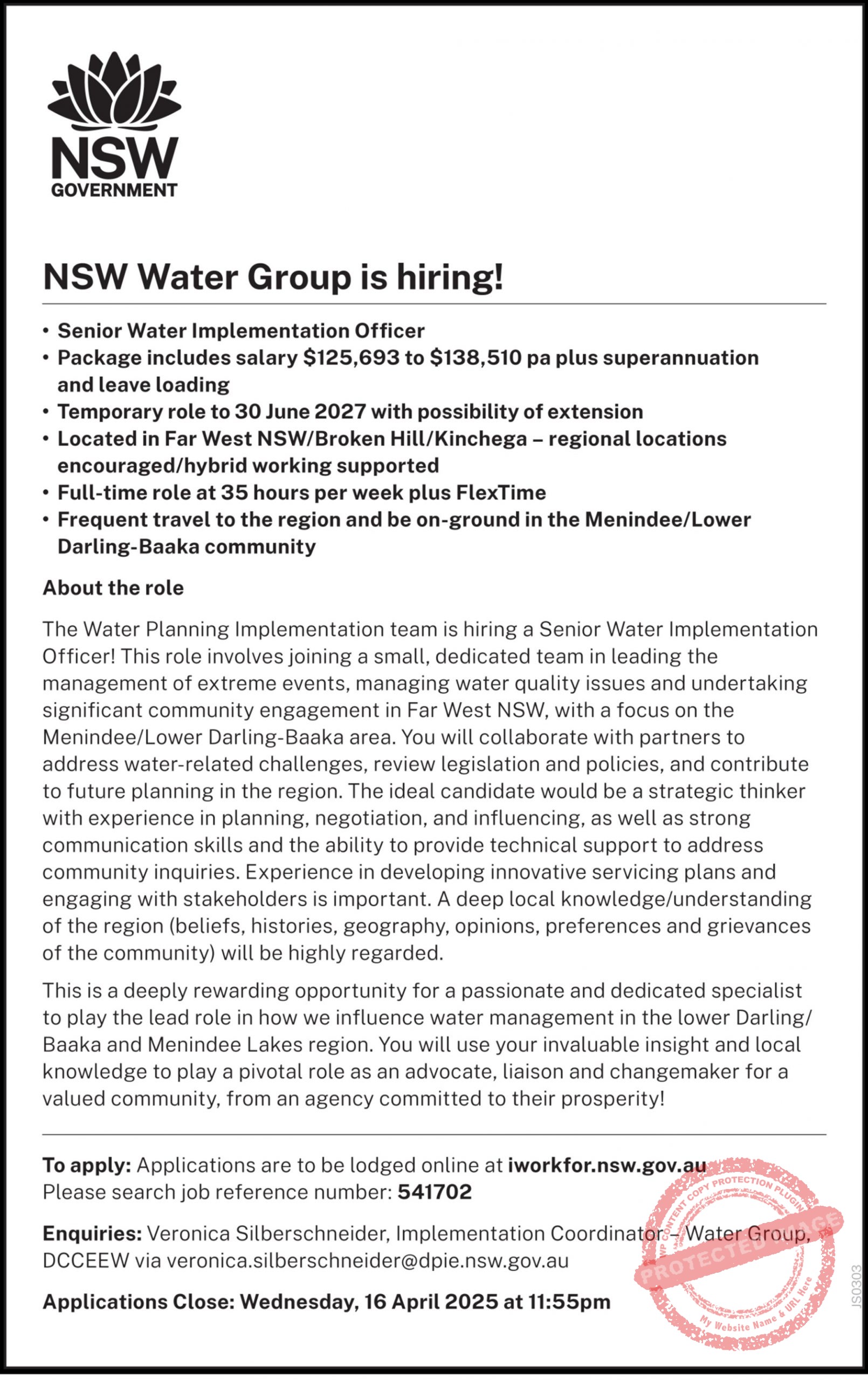 Pos Vac NSW Water Group