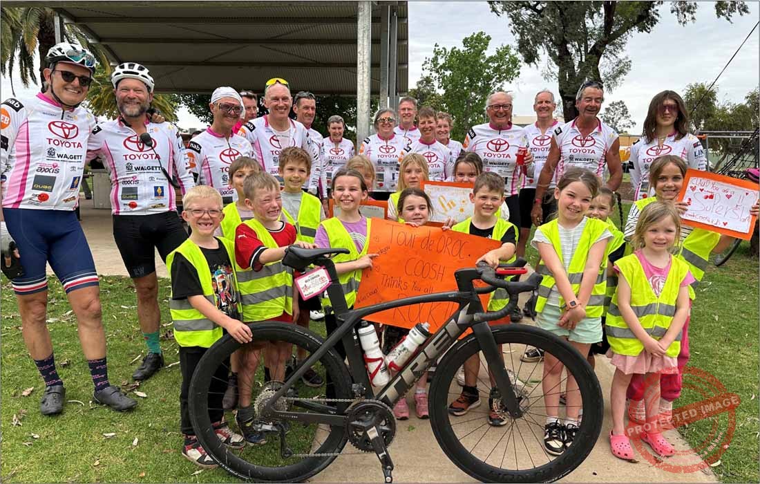 The first peloton of the Tour de OROC 2025 group of riders arrived in Cobar yesterday just before 3pm and were greeted by locals, including the COOSH (Cobar Outside of School Hours Care) kids at Drummond Park. The cyclists rode 130km from Nyngan to Cobar yesterday as part of their 800km+ charity ride throughout the west. The biennial event raises money for the Macquarie Home Stay facility, which provides accommodation for rural and remote families needing to travel to Dubbo for medical treatment. After a town tour, dinner at the Cobar Bowling & Golf Club and, a well earned night’s rest, the cyclists will head off today for their longest leg, the 160km ride to Bourke.